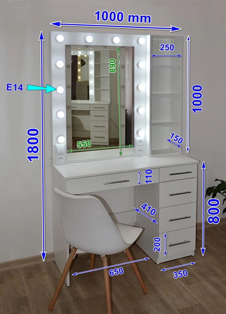✅ Макіяжні столики з шухлядами – зручне зберігання косметики та аксесуарів.