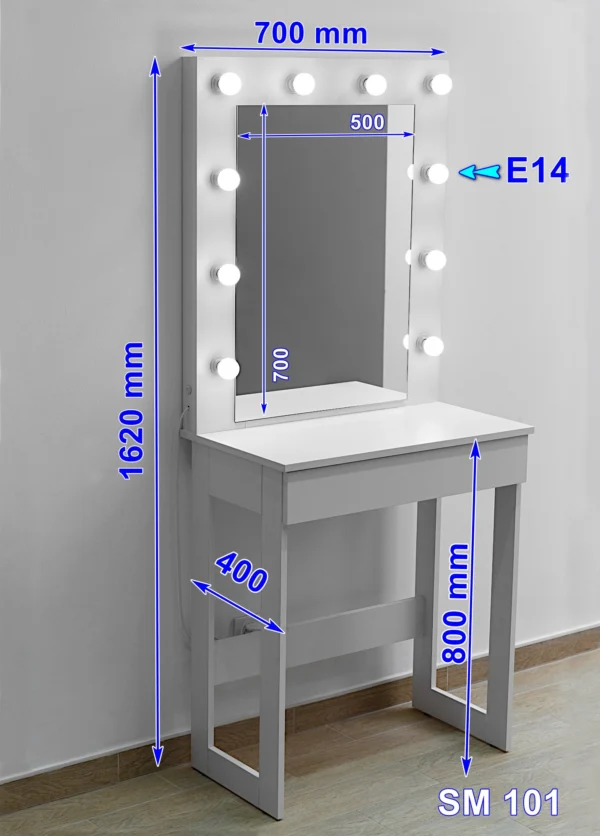 Купляла для роботи і дуже задоволена, якісні і хороші матеріали. Міцна поверхня, легко протирати, що особисто для мене важливо. Дзеркало чітке і світла вистачає.