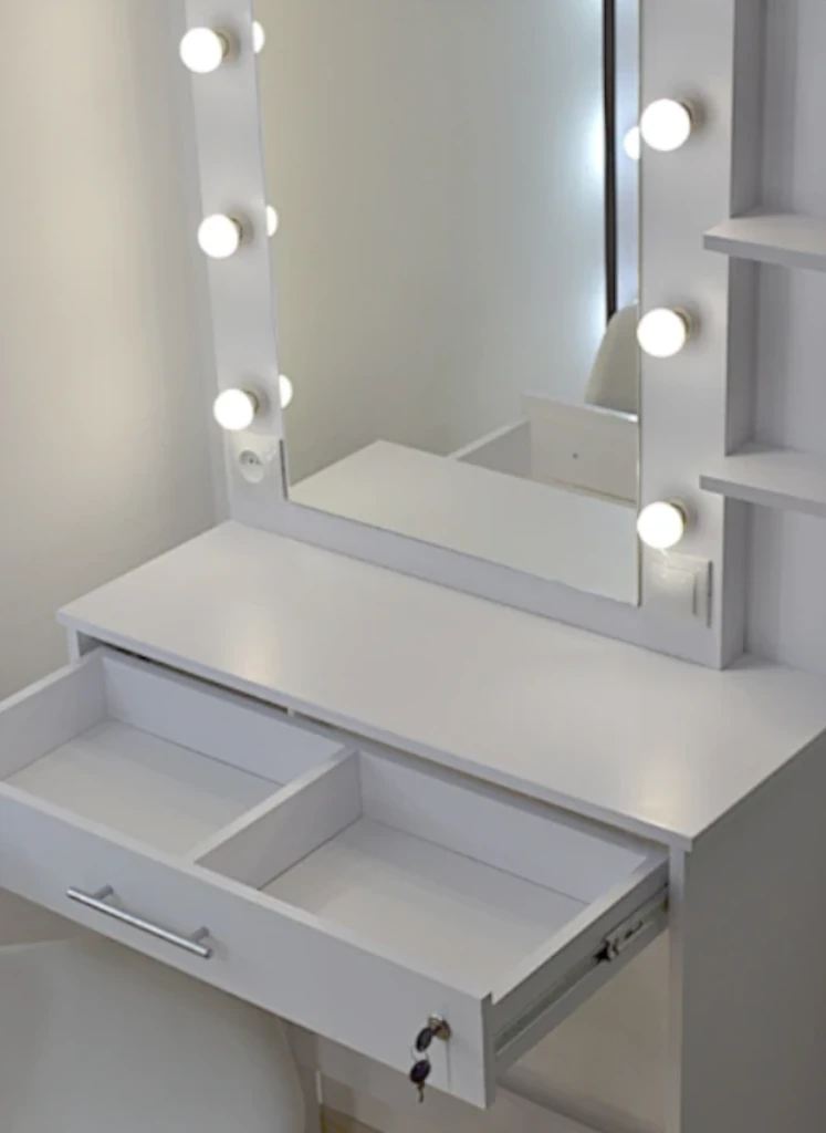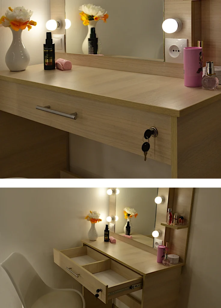 Звісно, туалетний столик – це не сейф. Але для тимчасового зберігання прикрас, які ви носите щодня (каблучки💍, коштовні прикраси💎, ланцюжки📿), він цілком підходить. Замок стане додатковим бар’єром від випадкових гостей, даючи вам додатковий спокій.
